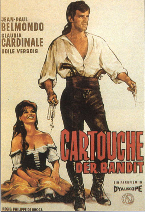 Two years and two films before THAT MAN IN RIO turned Phillipe de Broca’s partnership with actor Jean-Paul Belmondo into big international box-office, this period piece, a pre-French Revolution swashbuckler (very Robin Hood/Merry Men) got things going. And if the chintzy production now looks overdressed and joie de vivre a bit forced, structure, pacey reversals of fortune and character shading keep it taut between action & crises. Based on a real person (Louis-Dominique Bourguignon), Cartouche, as he calls himself, moves upwards from Bandit to Bandit King to Bandit King-with-a-purpose once he usurps power from the venal Marcel Dalio, and gets his fellow cut-pursers to pledge their loyalty. Now if he can only keep away from the Aristos out for his blood. All this complicated by his two loves: a passion for the elegant Odile Versois, wife of his main pursuer; and his shared bond with beautiful fellow crook Claudia Cardinale. With Jess Hahn & a marvelous Jean Rochefort as his top aides, they raid estates and loot at will, crashing parties to steal jewels & plate between gavottes. (We never do see much sharing with the poor.) But when a love assignation turns into a trap, even a last-minute save will bring no more than temporary reprieve. Good fun, though a lack of technical dazzle and some repetitive staging works against the film. At this stage, neither de Broca nor French studios a match for Michael Curtiz working with Errol Flynn in TechniColor at Warners in the late ‘30s. The leap forward on RIO by de Broca & Belmondo considerable.